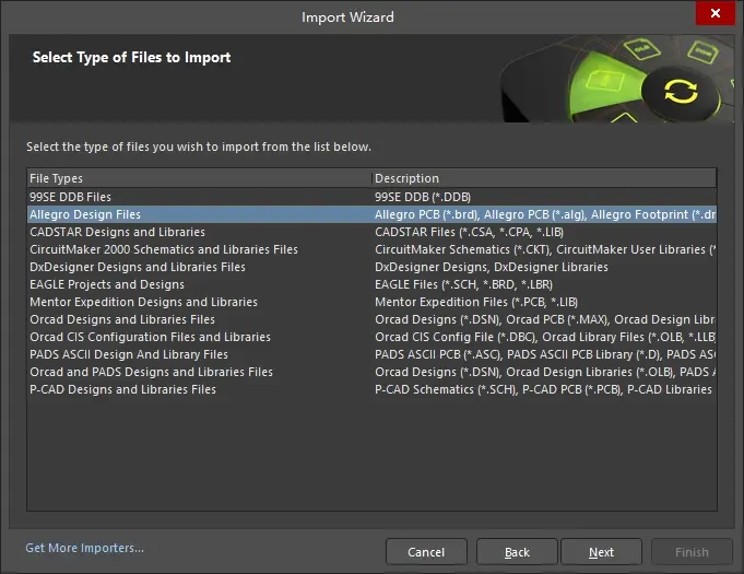 (2) 直接点Next进入导入文件类型选项,选择Allegro,然后点Next
